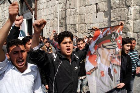 Miles de sirios marcharon desde otras ciudades hacia Dara para sumarse a las protestas allí, aunque las fuerzas de seguridad intentaron impedirlo y abrieron fuego contra manifestantes en el área de Sanamein, señalaron testigos.