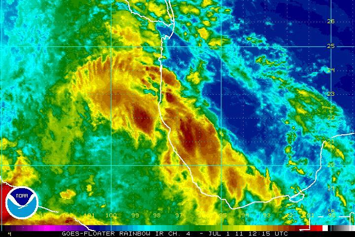 Por otra parte, un canal de baja presión, asociado con los remanentes de Arlene, que se extenderá del noroeste al sur de México, generará nublados con precipitaciones muy fuertes en el occidente del país.