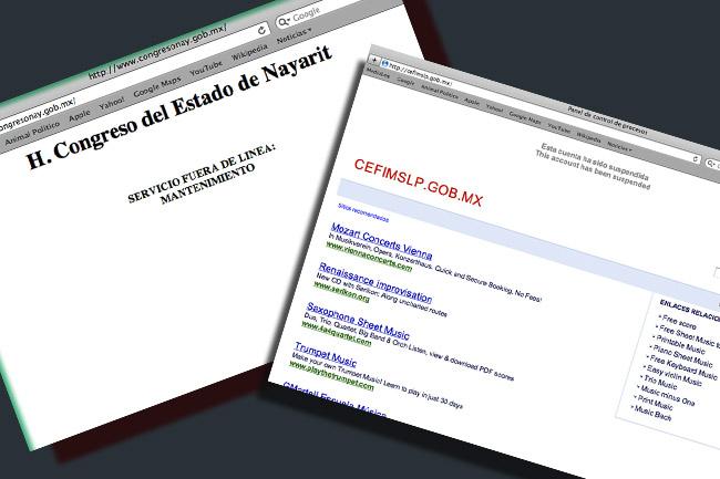 Algunos de los sitios que fueron sacados de circulación fueron los de la PGR, Sedena, Seguridad Pública, Cisen, el Gobierno de Tlaxcala y los congresos de Oaxaca y Nayarit.