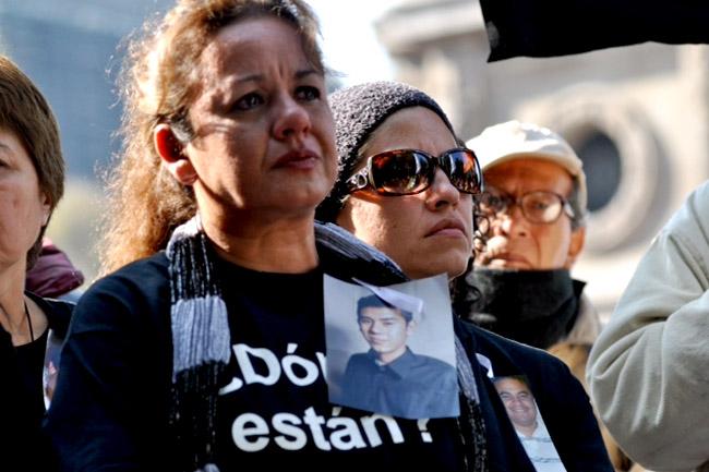 A su lado está Verónica, hermana de Jehú Abraham Sepúlveda, detenido por policías municipales de Nuevo León, el 12 de noviembre de 2010, por estacionarse sobre unas bollas viales para comprar algo en un Oxxo, y quien desde entonces está desaparecido.
