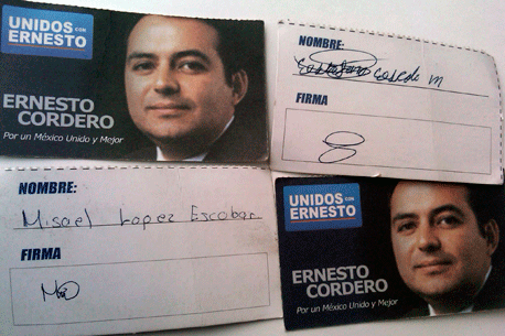 En suma, le entregarían 250 pesos por cada integrante de la familia que votara a favor de Cordero, así que su esposa, nuera y cuatro hijos, todos miembros adherentes del PAN desde diciembre de 2009, no la pensaron mucho cuando aquellas personas les entregaron las tarjetas de presentación con la foto del precandidato que, una vez emitido el voto, cambiarían por dinero.