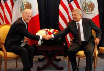 El precandidato presidencial de la izquierda, Andrés Manuel López Obrador, se reunió esta tarde con el vicepresidente de Estados Unidos, Joe Biden, a quien expuso algunas de sus propuestas de gobierno y pidió lograr una relación de cooperación para el desarrollo entre México y Estados Unidos que vaya más allá de los temas de seguridad.