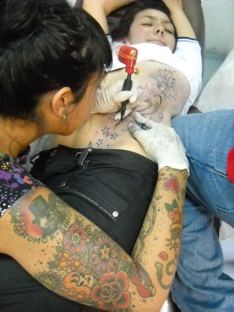Hay partes que son más difíciles y dolorosas como las costillas hacia la panza. Los empeines, la cara, son zonas muy sensibles, la entrepierna. Por ejemplo, eso que dices si alguien quiere un tatuaje en las costillas y es su primera vez, le tengo que decir lo difícil que sería y su sufrimiento. Es decir, que lo piense dos veces.