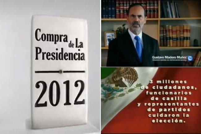 Finalmente, el spot del PAN muestra a su presidente, Gustavo Madero, en lo que parece ser su oficina en el CEN del PAN, donde en un mensaje acelerado por una edición que quita las pausas naturales, el líder partidista acepta la derrota con un semblante serio.