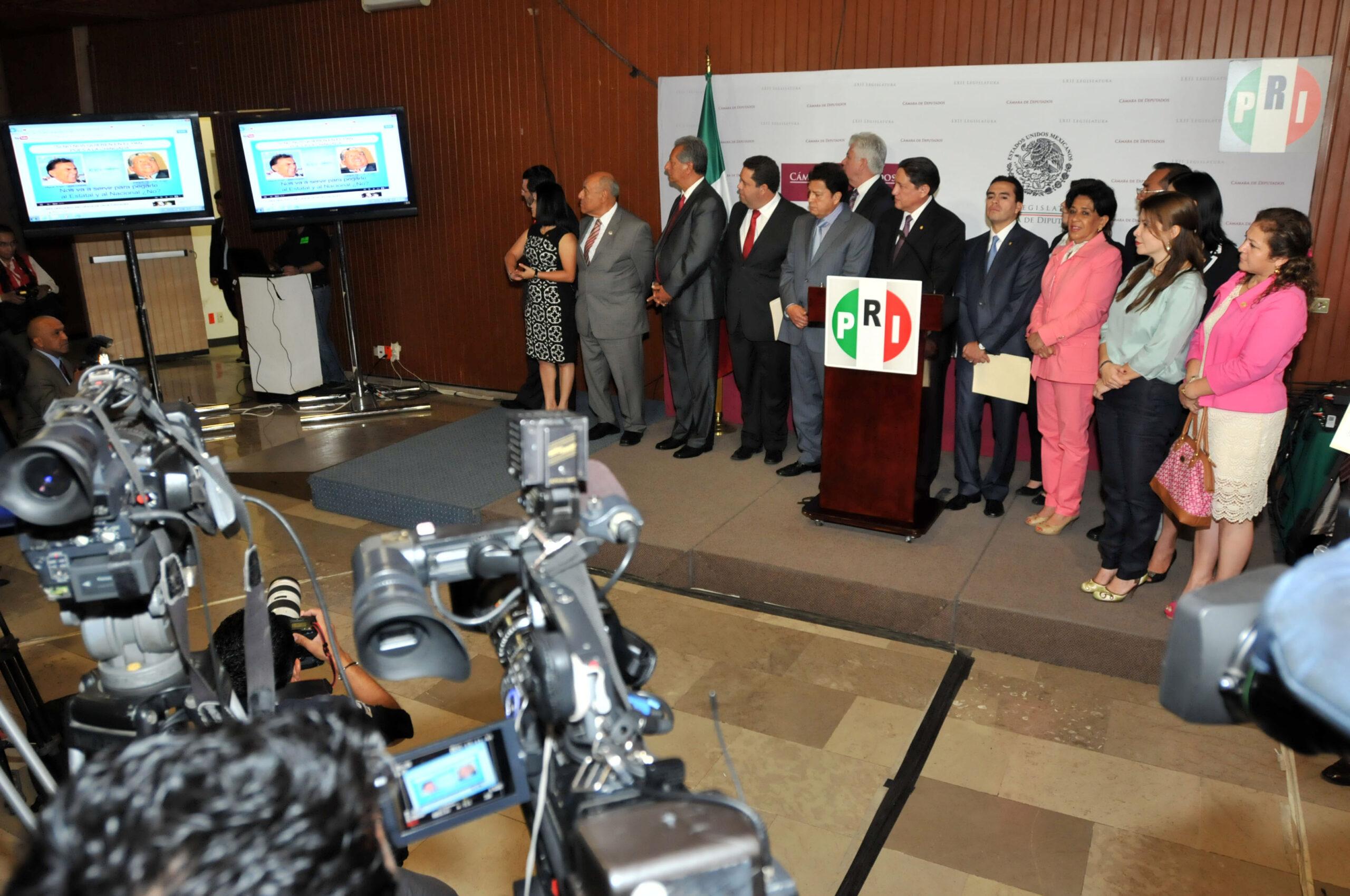En conferencia de prensa en el Palacio de San Lázaro, los legisladores priistas encabezados por Ricardo Aldana, Alejandro Montano y Fernando Charleston presentaron lo que llamaron “pruebas contundentes” de los desvíos de recursos y dieron a conocer dos conversaciones telefónicas correspondientes a enero y febrero de 2012.