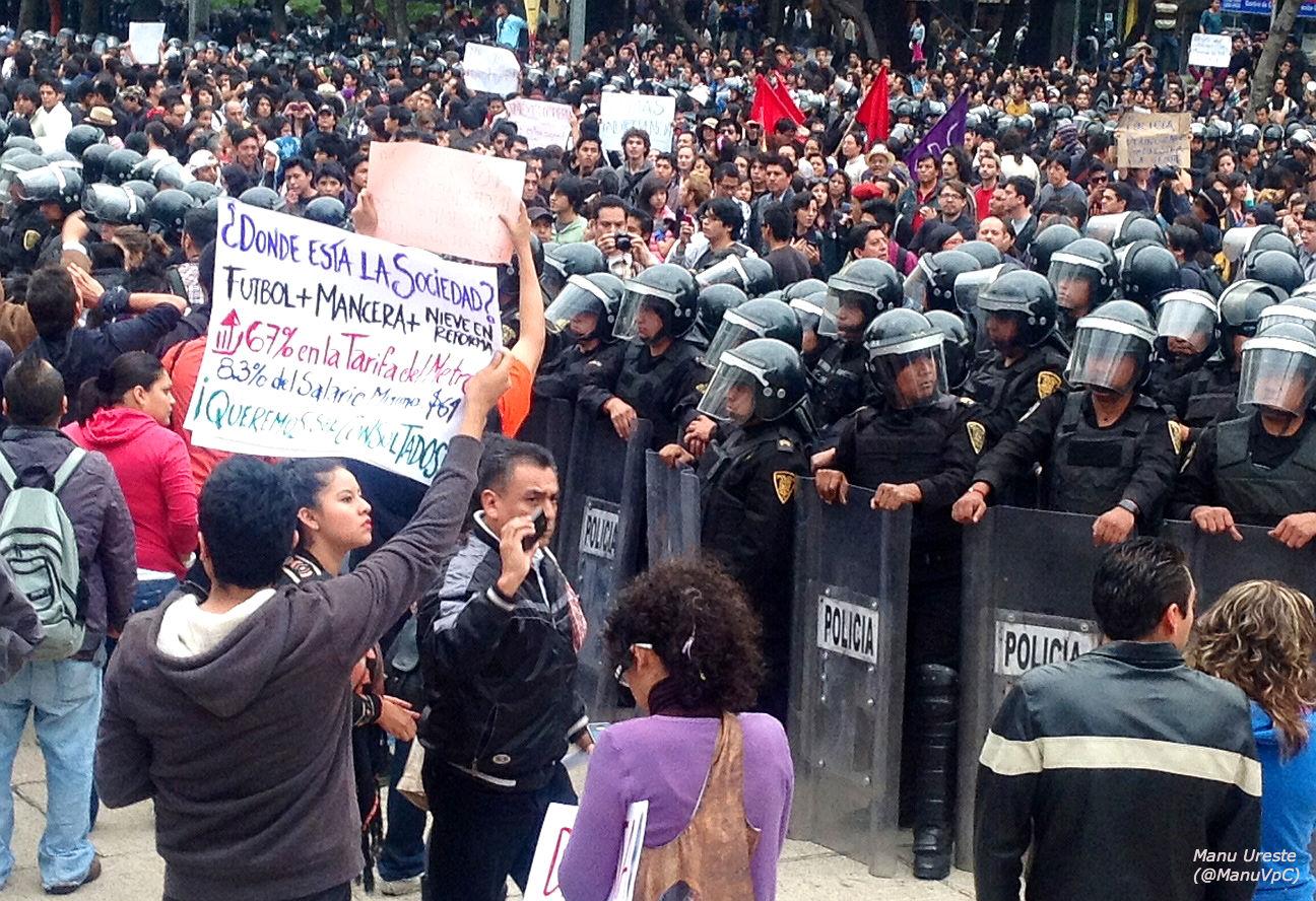 [contextly_sidebar id=”6f4dae9a298e82bdc9e160d5f97f415f”]Aldo Sotelo, reportero de Radio Nederlands, fue agredido por elementos de la Secretaría de Seguridad Pública en la marcha del pasado sábado 14 de diciembre en la que cientos de jóvenes protestaron por el alza en la tarifa del Metro. Sotelo denunció en el sitio de internet de la emisora pública holandesa que tres elementos lo golpearon después de que uno más diera la orden.