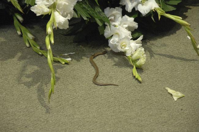 Según algunos diputados la víbora que apareció en el Pleno salió de los arreglos florales que el grupo parlamentario del Partido de la Revolución Democrática (PRD) llevó a la sesión para escenificar un funeral por “la muerte” de Petróleos Mexicanos y de la Comisión Federal de Electricidad.