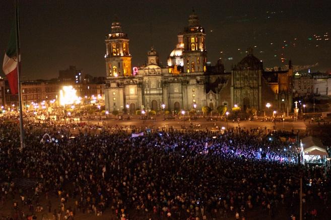 A pesar de ello, narra, hacia las 21:40 horas, la Policía Federal y la Policía Auxiliar del DF iniciaron un operativo de “barrido de toda la plaza, y cuando yo y mi familia quisimos desplazarnos por la calle de Madero (principal acceso peatonal al Zócalo) nos dimos cuenta que la calle estaba totalmente oscura, las autoridades apagaron las luces de este andador durante el operativo, y eso es algo que nunca habíamos visto que ocurriera, y eso nos provocó miedo, así que decidimos dar media vuelta y buscar salir de la plaza por la calle 5 de Mayo (paralela a Madero), pero la policía nos impidió el paso por ese lado y, en un instante, un grupo de granaderos se desprendió del contingente que nos bloqueaba el paso y, sin mediar palabra, nos empezaron a golpear, a mi familia y al resto de la gente que quedamos atrapados, ahí fue cuando comenzó el caos.”