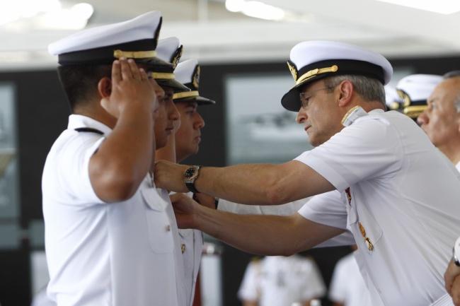Hizo un reconocimiento a las fuerzas de la Marina y pidió a las unidades que fueron reconocidas en el mismo acto por el presidente de la República con diez Menciones Honoríficas, que tomen este galardón como motivo de orgullo y de obligación de honor para con la institución y el país.