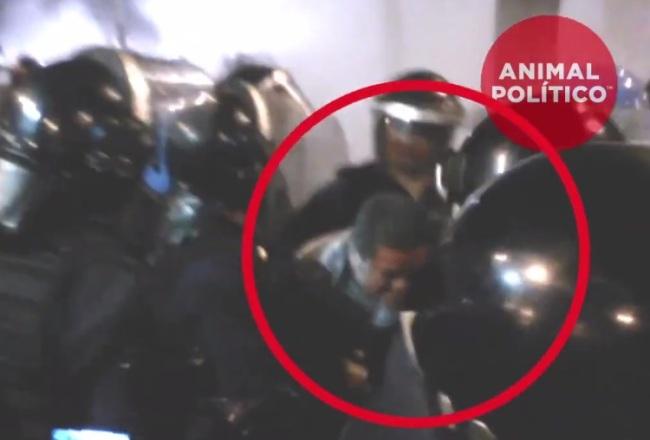 Cabe destacar que, luego de arrojar el tubo contra los manifestantes replegados, este funcionario fue detenido por granaderos que presenciaron su agresión –de hecho, le propinan algunos golpes–, aunque instantes después, otros policías lo identifican como “compañero” y el arresto se suspende, todo lo cual quedó registrado no sólo en el video de Animal Político, sino también en el de “Elmolavella”.