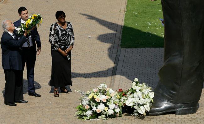 Al homenaje realizado a los pies de la estatua de bronce con la imagen del Premio Nobel asistieron la familiaMandela, su amigo y compañero en la prisión de Robben Island Ahmed Kathrada y su abogado George Bizos.
