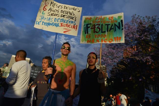 Luego de partir del Ángel de la Independencia, y de recorrer avenida Reforma hasta su cruce con Bucareli, donde la marcha enfiló al monumento a la Revolución, el señor Epifanio Álvarez, del comité de padres y famliares de los normalistas desaparecidos, pidió a la población mexicana “que cuando haya otra manifestación, otra marcha, que estén con nosotros, que se unan, eso les pedimos como padres… porque nos sentimos de verdad con fuerza cuando vemos que ustedes se unen a la misma lucha de nosotros, sabemos que el gobierno no nos podrán parar, pero cuando somos pocos, ahí sí hay tristeza, porque nos reprimen y tenemos que retroceder…”