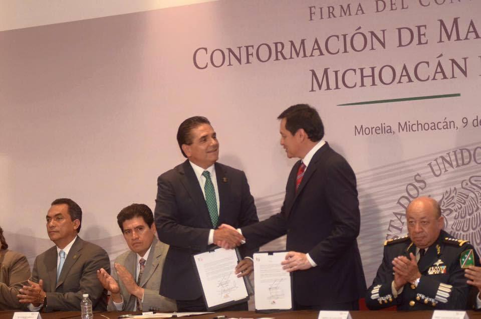 [contextly_sidebar id=”Lll9Rwh1gT3EG5nPQzgMW0nVNySTgUah”]Para el secretario de Gobernación, Miguel Ángel Osorio Chong, “Michoacán está dejando de ser ejemplo de infiltrados, de colusión, de contubernio, de complicidad”. Esto lo afirmó durante la firma del convenio para la conformación del Mando Único Policial en la entidad.