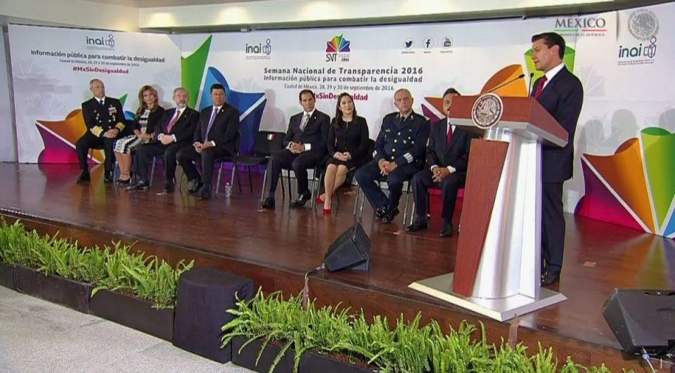 En presencia de la comisionada presidenta del Instituto Nacional de Transparencia, Acceso a la Información y Protección de Datos Personales (INAI), Ximena Puente, Peña Nieto sostuvo que es necesario hacer una reflexión de cuánto hemos avanzado, aunque reconoció que aún hay retos y desafíos, pues “vivimos tiempos complejos y difíciles”.