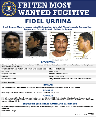 El FBI indicó que Fidel Urbina es prófugo de la justicia por los delitos de secuestro, violación y homicidio.