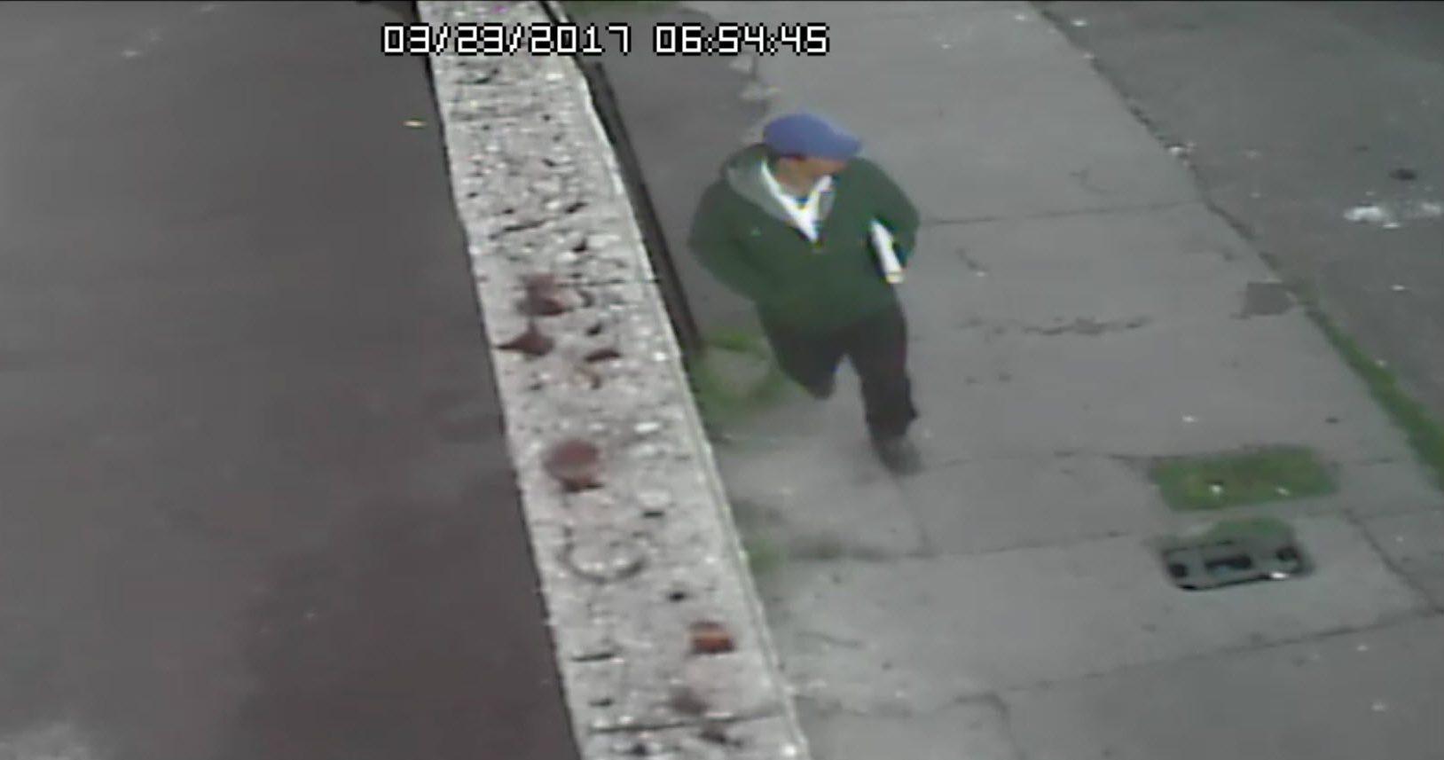 El hombre de gorra azul, que trae una cartulina envuelta bajo el brazo izquierdo, fue captado minutos antes de que la colaboradora del diario La Jornada saliera de su vivienda.