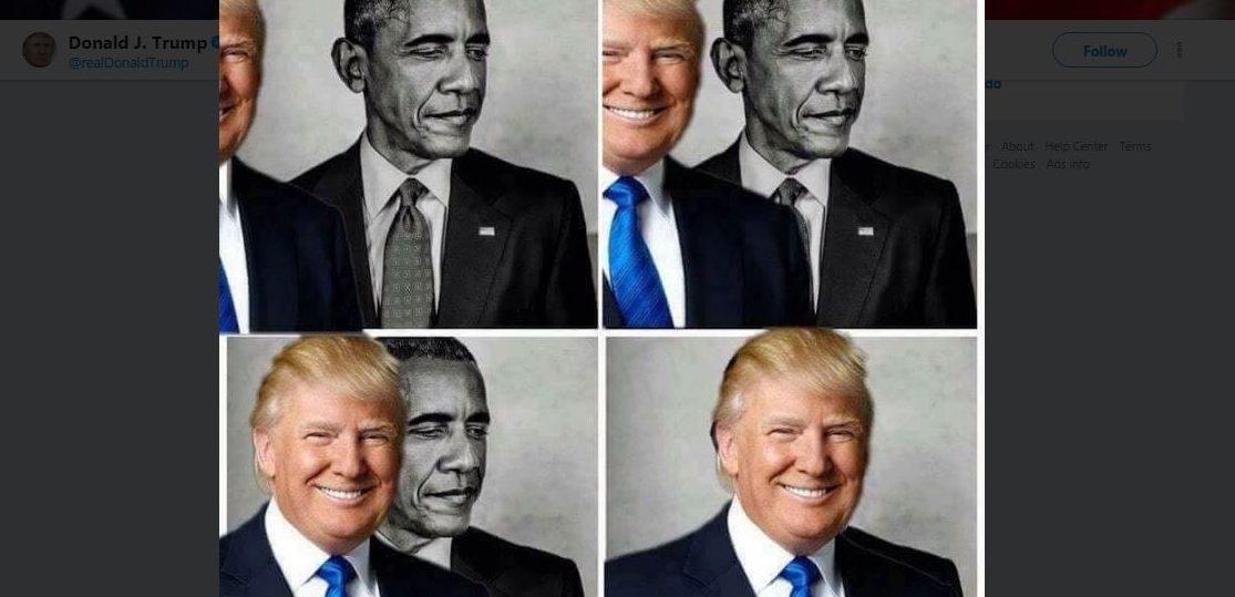 En la imagen se observa a Trump cubriendo paulatinamente al expresidente Obama, hasta que finalmente lo tapa por completo. El meme fue publicado originalmente por el usuario de Twitter @JerryTravor.
