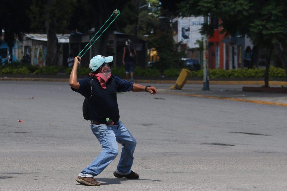 En la Calle Camino Nacional, en el municipio de Santa Lucía del Camino, los inconformes se enfrentaron con policías antimotines de la Policía Federal, quienes arribaron desde ayer a la entidad.