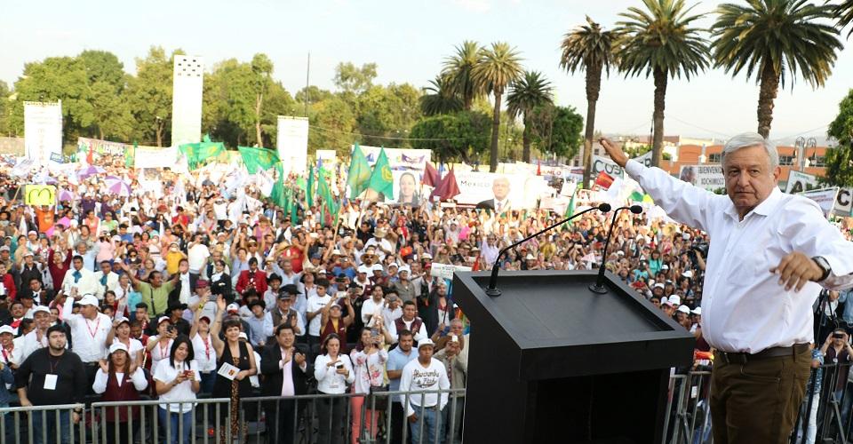Tras el mitin en Milpa Alta, el candidato de la coalición Juntos Haremos Historia reiteró en la delegación Xochimilco varias de sus propuestas de campaña, como ahorrar 500 mil millones de pesos a partir del combate a la corrupción y la reducción de salarios y privilegios en la administración pública.