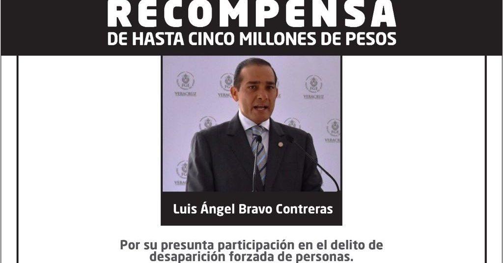 El exfiscal General de Veracruz, Luis Ángel Bravo Contreras, es buscado por el presunto delito de desaparición forzada por lo que se ofreció hasta 5 millones de pesos por información de su paradero.
