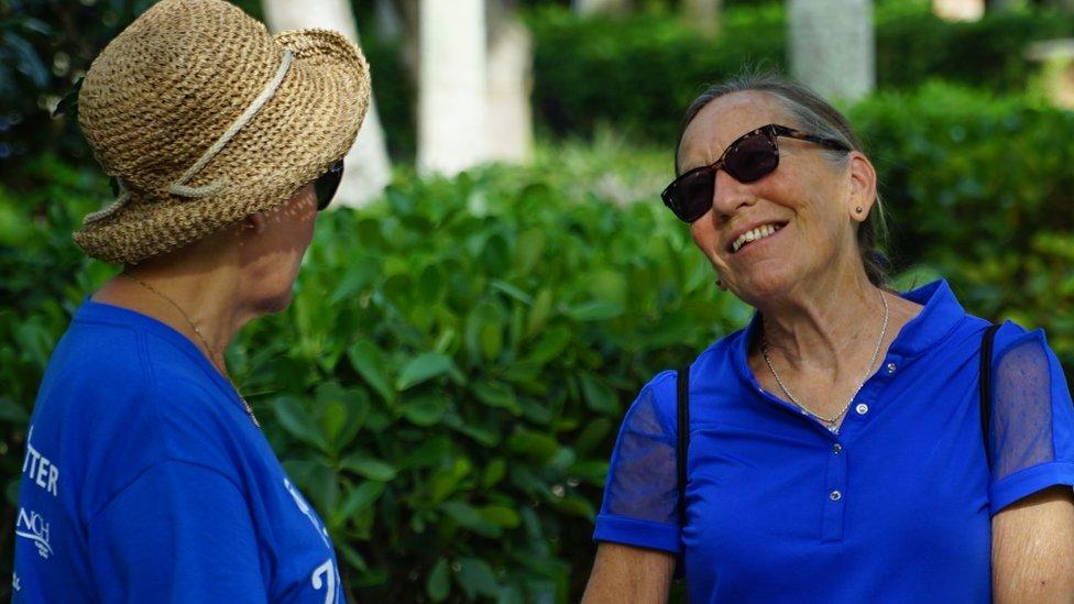 "Cuando me invitaron a unirme al grupo pensé que me haría bien hacer un poco de ejercicio, pero aquí me dijeron que lo que me ayudaría de verdad es tener un grupo de personas con quienes socializar", dice Margaret Maree, una diseñadora gráfica que se mudó hace un año a Naples, mientras estira brazos y piernas para entrar en calor.