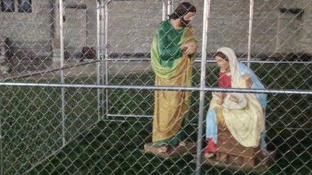 Las imágenes de la Sagrada Familia prisionera dieron la vuelta a Estados Unidos. La propia iglesia explicó el significado de la instalación.