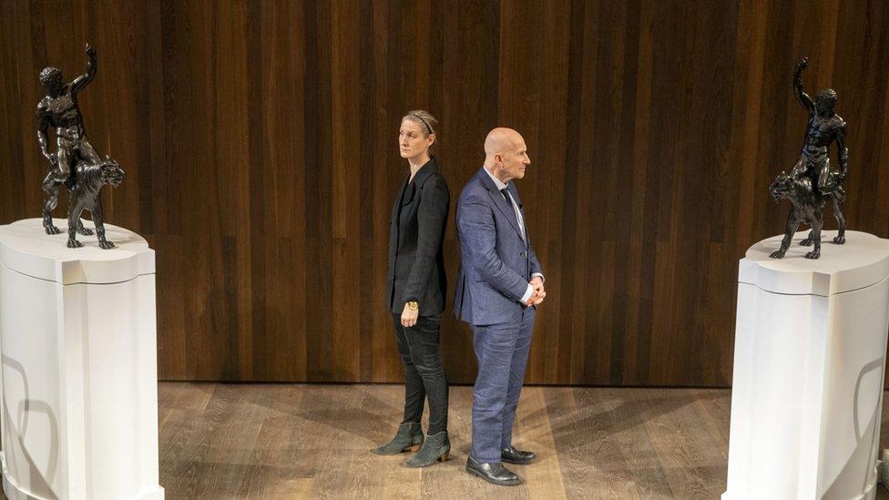 Se trata de dos esculturas de un metro de altura de dos fornidos hombres desnudos montados en panteras que en 2002 la casa de subastas Sotheby’s vendió por más de US$2,3 millones.