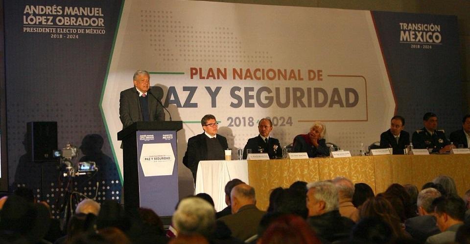 El presidente electo, Andrés Manuel López Obrador, e integrantes de su equipo, presentaron este miércoles el Plan nacional de paz y seguridad para el próximo gobierno, con puntos como una “reformulación” del combate a las drogas, la posibilidad de otorgar amnistía y la creación de una Guardia Nacional de 50 mil integrantes en un periodo de tres años, con elementos de las policías Militar y Naval, así como de la actual Policía Federal.