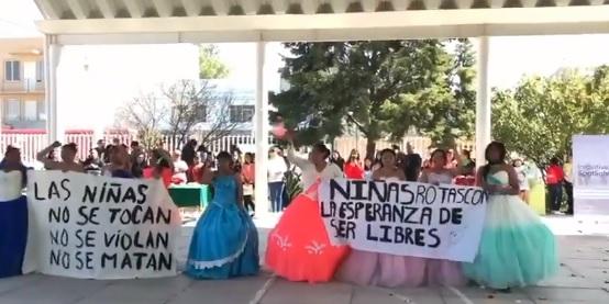 Luego las chicas presentaron un performance llamado “Quinceañera”. Con vestidos ampones, los que usaron en sus propias fiestas de XV años, recordaron a mujeres como ellas, pero que han sido violadas y asesinadas.