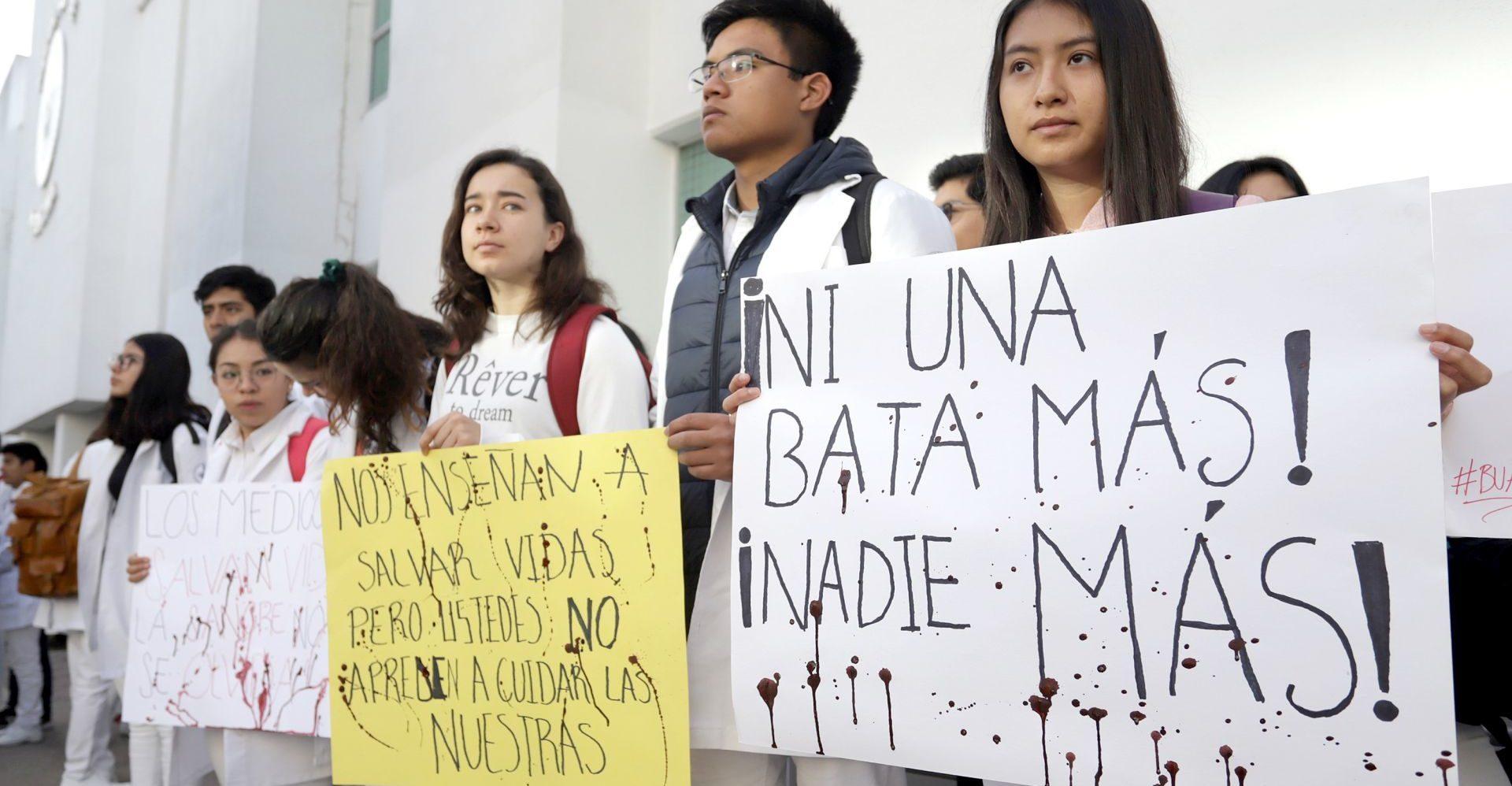 En Puebla, estudiantes de la @UPAEP y la @BUAPoficial se manifiestan en exigencia de justicia por la muerte de Ximena, José Antonio y Francisco Javier, alumnos de medicina que fueron asesinados junto a José Manuel, el conductor del Uber que habían tomado.