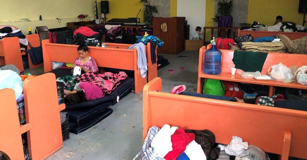 A su alrededor hay otras 20 familias con los que pernocta en colchonetas tendidas entre las bancas del área de oración y altar del templo metodista el Buen Pastor, ubicado entre barrancos y calles de tierra, al poniente de la ciudad.