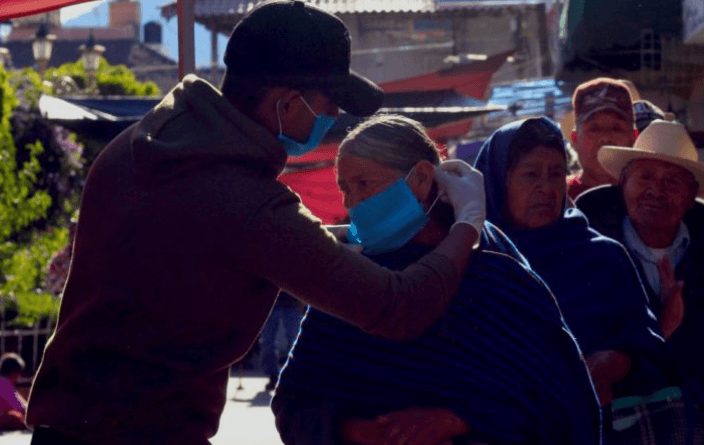 En México, los primeros casos con esta enfermedad se registraron, de acuerdo con los datos oficiales, a finales de febrero. A partir del 23 de marzo se puso en marcha el programa “Sana distancia”, para mantener un “aislamiento preventivo” en la población. Sin embargo, hasta el 20 abril no se había anunciado ningún plan de atención específico para los indígenas, pese a que representan el 21.5 % de la población, según la Encuesta Intercensal 2015 del INEGI.