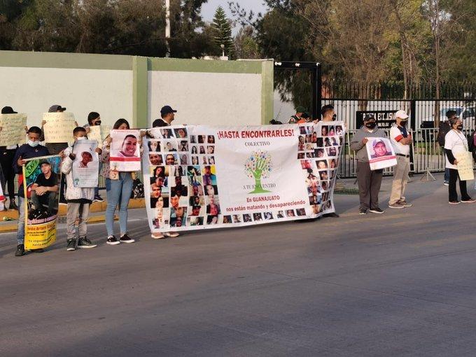 Familiares de personas desaparecidas en Guanajuato se reunieron frete a la XII Región Militar, en donde se realiza la conferencia matutina del presidente Andrés Manuel López Obrador, acompañado del gobernador del estado, Diego Sinhue Rodríguez, y otros miembros del gabinete.