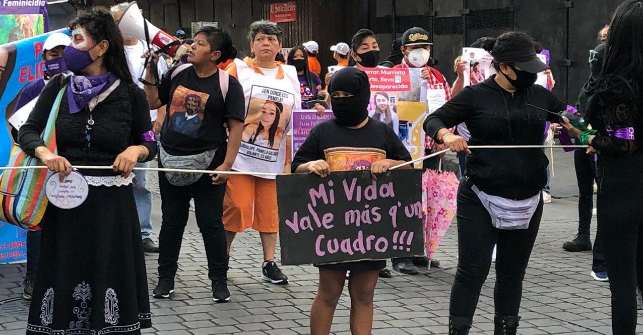 Al arribar al Zócalo, madres de víctimas leyeron un pronunciamiento en el que hablaron de cómo las mujeres deben cuidarse del coronavirus y de la violencia.