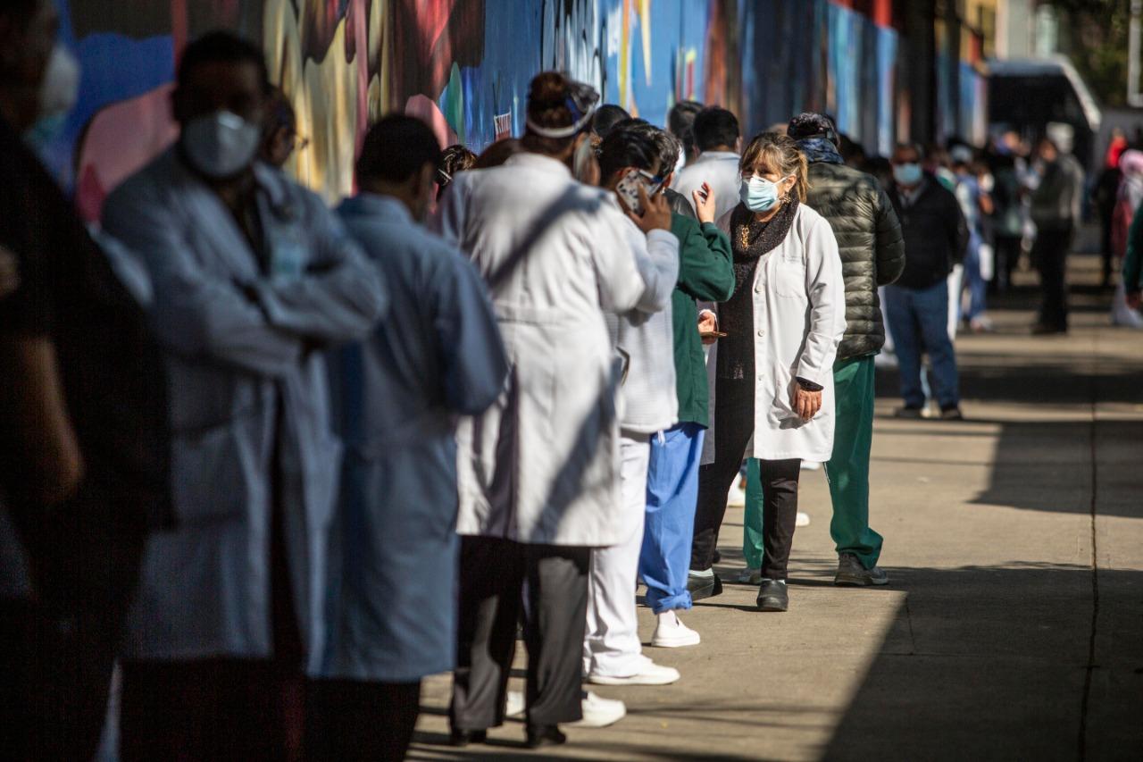Médicos y enfermeras del Hospital La Raza realizaron una protesta para denunciar que las 22 vacunas asignadas al personal no fueron aplicadas a personal médico que está en primera línea luchando contra la COVID.