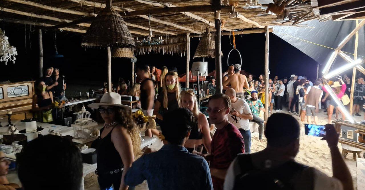 Ese mismo 5 de enero, también en Tulum, lo mismo: en un club de playa ubicado en el kilómetro 10 de la carretera Cancún-Tulum, los turistas graban con sus celulares otra fiesta diurna en la que hay música electrónica y champaneras bajo las palmeras, pero ni rastro de los cubrebocas.