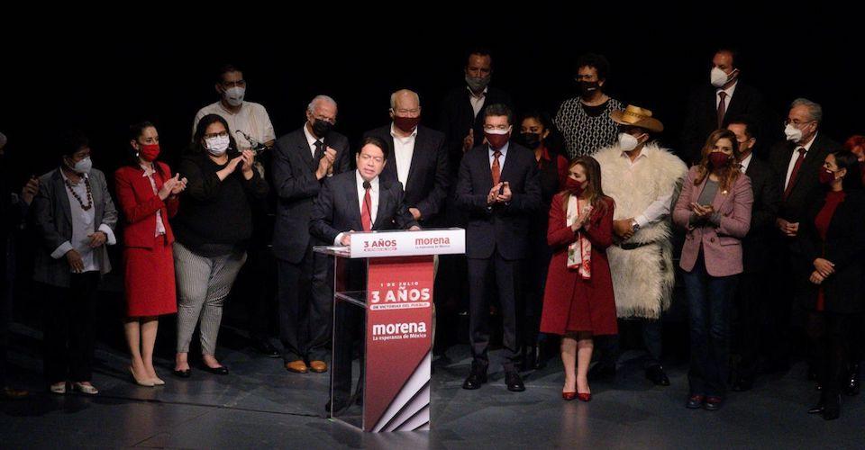 Morena festejó los tres años de su victoria presidencial con un mitin en el Auditorio Nacional, organizado por la dirigencia y al que acudieron gobernantes del partido y ganadores de la elección.