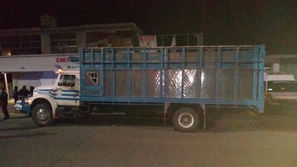 La madrugada de este lunes, en el punto de revisión del municipio de Huajuapan de León, agentes de migración detuvieron la unidad de transporte. Al revisarlo escucharon voces en la parte trasera del camión.