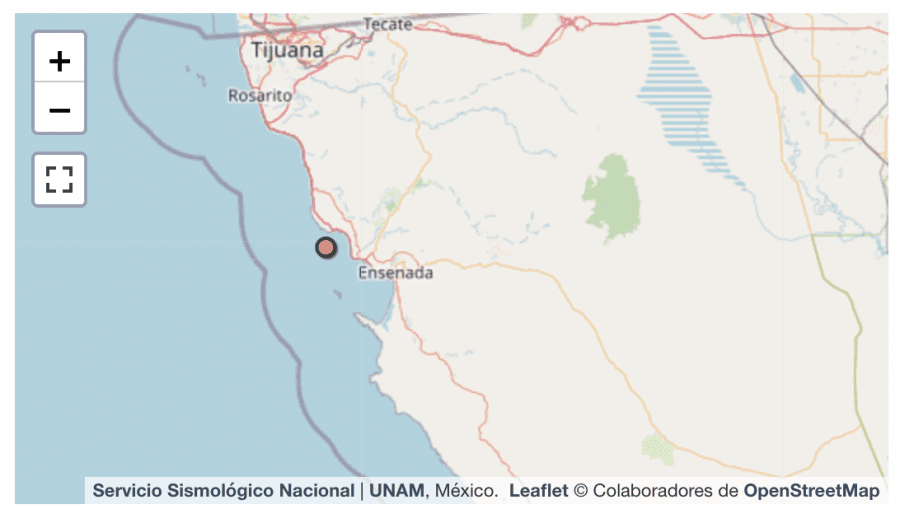 Durante esta mañana se registró sismo de magnitud 4.6 con epicentro al noroeste de Ensenada, BC.