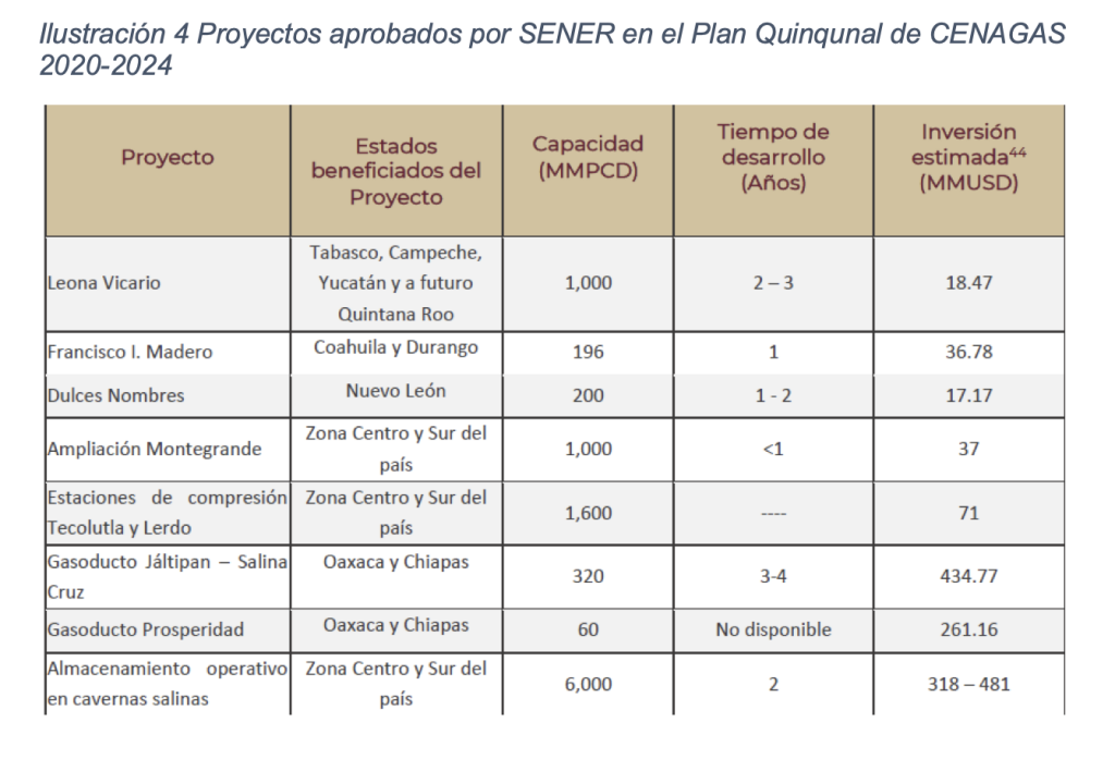El 5 de noviembre de 2020 se publicó el nuevo Plan Quinquenal del CENAGAS, elaborado por la presente administración. En este plan se agregaron nuevas estaciones de compresión para atender el corredor transístmico. La producción de Pemex seguía considerada para atender la zona sur y sureste. 4