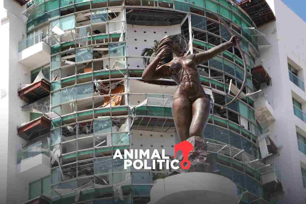 Puerto Marqués, uno de los puntos de playa en Acapulco, quedó devastado con el huracán Otis. En las calles hay infinidad de árboles y postes de energía eléctrica caídos, láminas de los techos de las viviendas, tinacos, puertas y vidrios rotos.