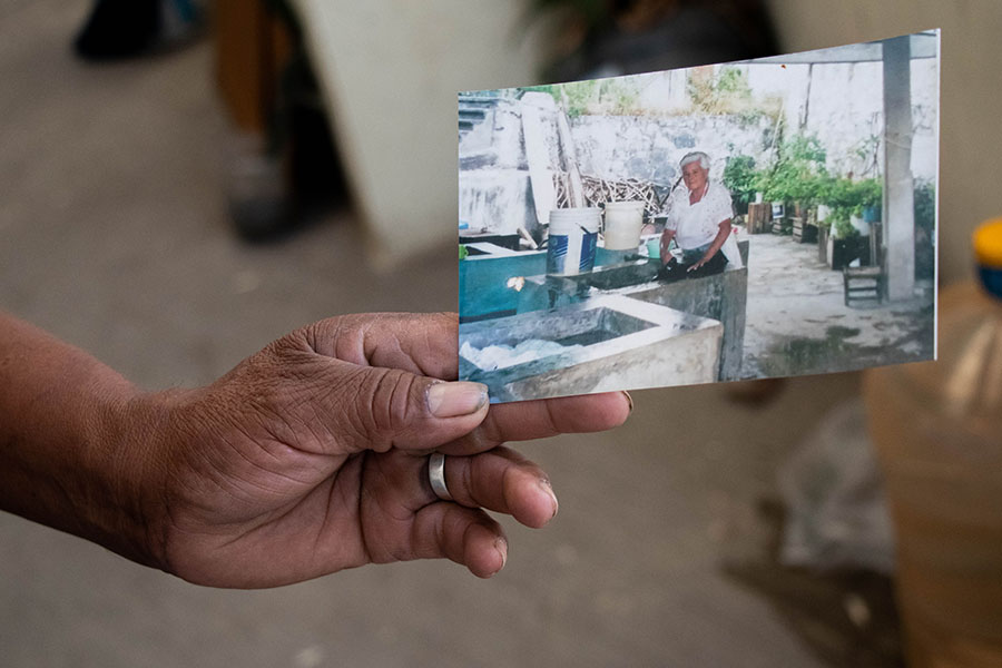 Graciela Hernández restriega una camisa negra, le pone jabón y la deja sobre el lavadero mientras toma agua con una jícara, que después deja caer sobre la prenda. Cada ocho días, acude a lavar a los lavaderos públicos del barrio de Tequicorral, un lugar conocido como Los Túneles.