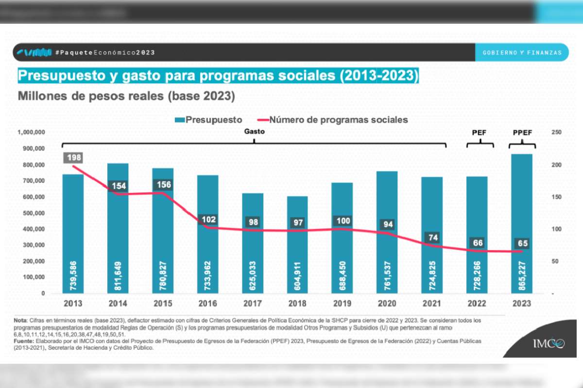 De acuerdo con un análisis realizado por el Instituto Mexicano para la Competitividad (IMCO), “aunque los programas sociales tengan un monto sin precedentes para el 2024, estamos dando palos de ciego en tanto no se garantiza el ejercicio eficiente de los recursos ni la operación correcta de los programas”.