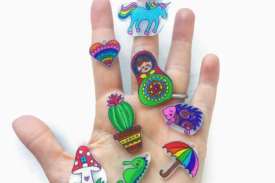 Este juguete pensado en las niñas y niños con un lado artístico te permite decorar unas hojas de plástico que después podrás recortar en la forma que quieras para crear tus propios llaveros, joyería, muñequitos o lo que se te ocurra.