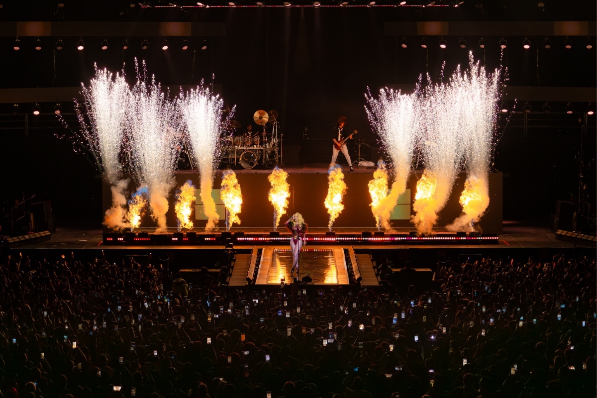“Put Your Head on My Shoulder…” Y empezó la acción con pirotecnia y fuego. El público extasiado.