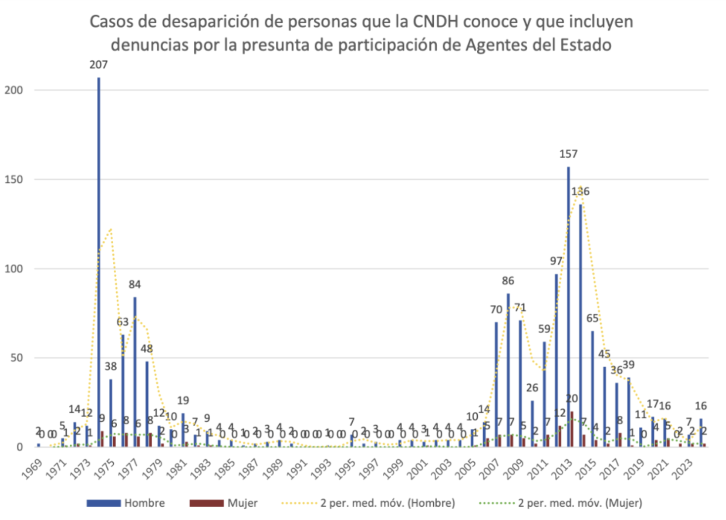 Este gráfico demuestra que la CNDH ha seguido documentando casos de desapariciones con la presunta participación de agentes del Estado: