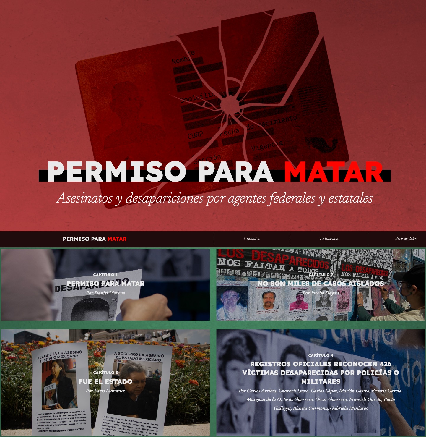 La investigación Permiso para matar, una investigación de Animal Político dirigida por Daniel Moreno en colaboración con Paris Martinez y Jacobo Dayán; documentó un patrón de crímenes de lesa humanidad presuntamente cometidos por fuerzas de seguridad mexicanas, federales y estatales, contra 1,524 víctimas inocentes o indefensas durante los sexenios de Felipe Calderón, Enrique Peña Nieto y Andrés Manuel López Obrador.