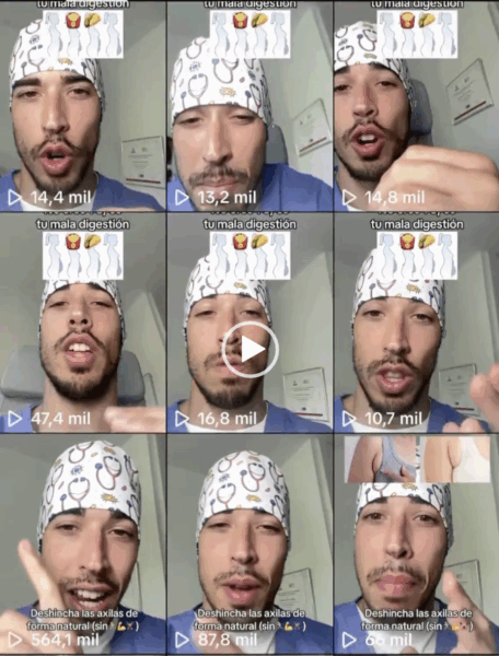 Ejemplo de ello es el usuario @malnupewellnes, quien en todos sus videos utiliza filipinas quirúrgicas o elementos médicos y afirma ser un profesionista de la salud sin declarar su especialidad y cédula profesional. En su perfil, la sección de escaparate muestra 16 productos de la marca Vitday.