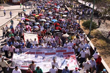 70 mil trabajadores de la educación participaron en esta marcha, que partió de las inmediaciones de la agencia de Viguera, a unos cinco kilómetros del centro de la ciudad, hasta el zócalo oaxaqueño.