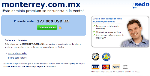 El dominio monterrey.com.mx es el más caro por su precio de 177 mil dólares, mientras que voto.com.mx cuesta 10 mil euros (12 mil 867 dólares).